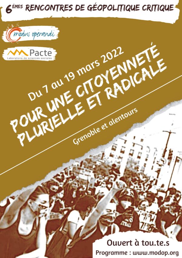 La 6ème édition des Rencontres de géopolitique critique : https://www.modop.org/les-rencontres-de-geopolitique-critique/#top a lieu en 2022 du 7 au 19 mars. L’équipe de Modus Operandi : https://www.modop.org/ qui porte ces rencontres est venue au complet avec certain·es de ces associé·es pour présenter le… Continue Reading →