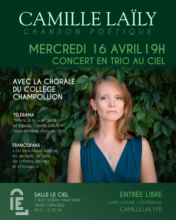 Nous avons eu le plaisir d’accueillir Camille Laïly et ses deux musiciens (Nicolas à la contrebasse et Hugo à la guitare) au Ciel, afin d’échanger sur leur projet en collaboration avec la chorale du collège Champollion de Grenoble. En effet,… Continue Reading →